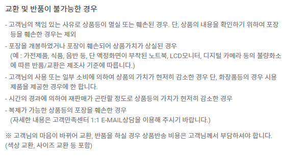 교환 및 반품이 가능한 경우